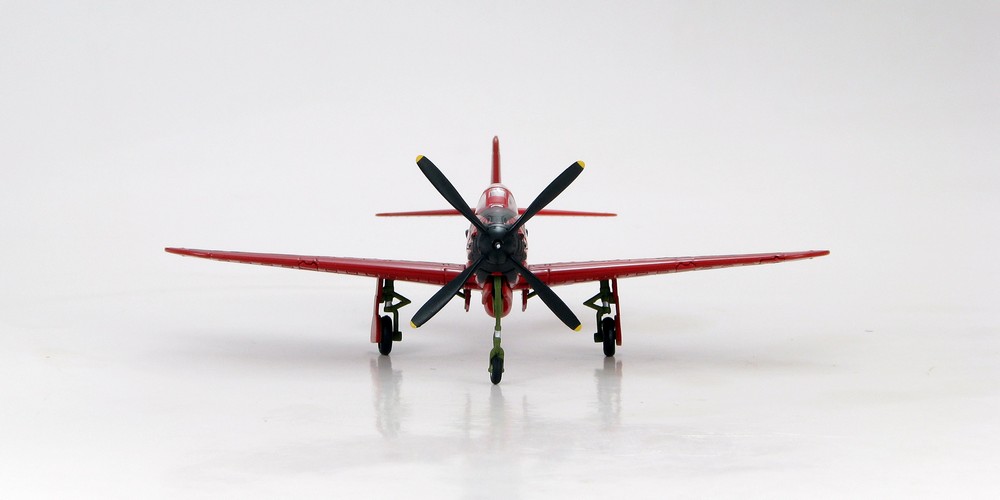 Die-cast metal. Superb detailing in 1/72 scale. Pre-painted with pad applied markings. Fully assembled. Comes with a pilot figure. Display stand included. Option to display model with wheels up or down. Movable propeller. Minimum use of plastic. Very collectable.