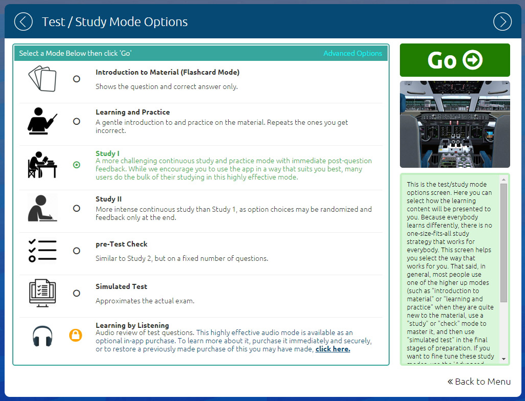 We believe (and scientific study validates) that the interactive activity of test preparation, when combined with the sort of detailed supplementary and explanatory material that we offer, is an excellent way to thoroughly learn and internalize key aviation information.