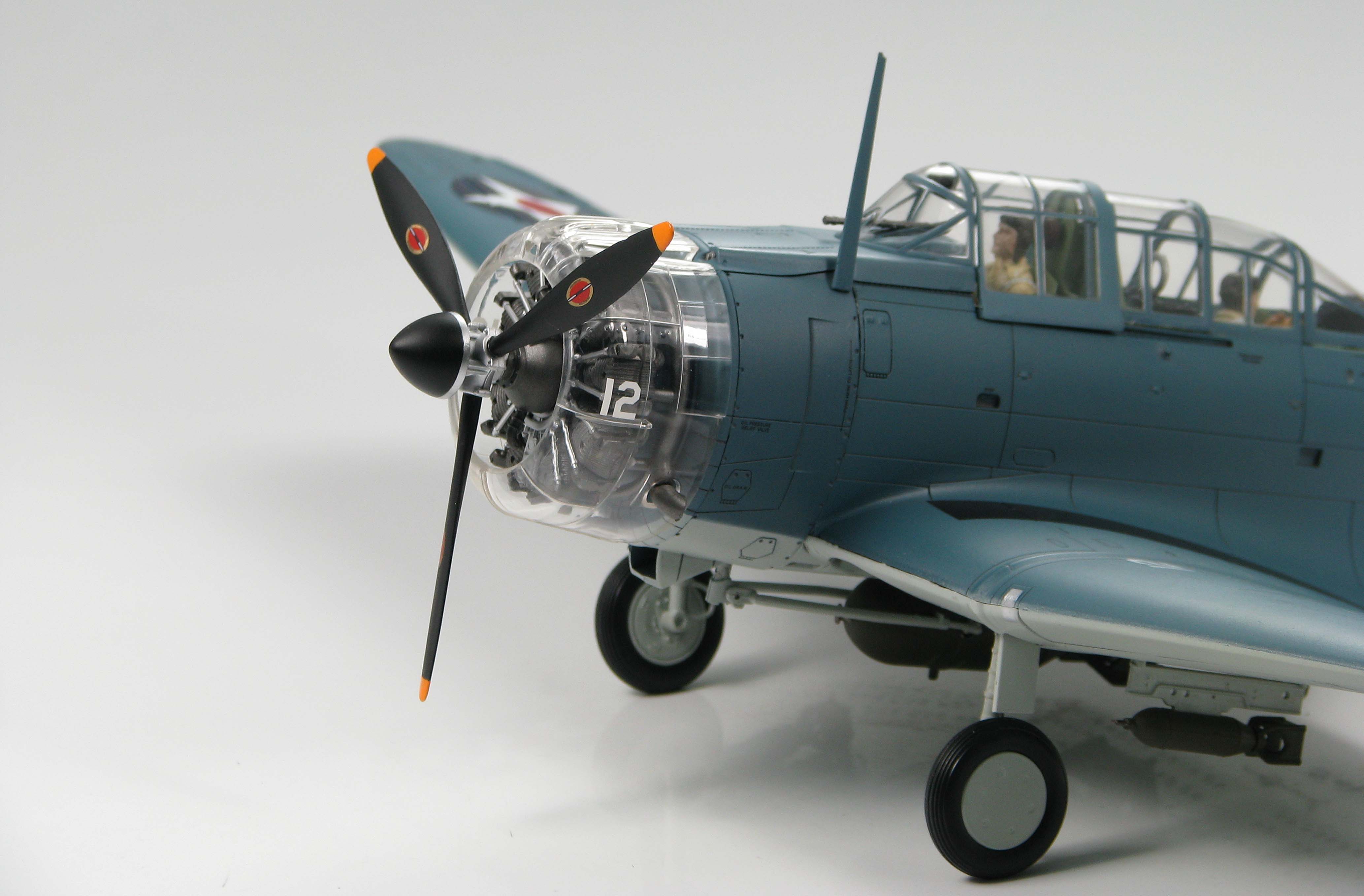 S-12 was an SBD-3 BuNo 4547 from VS-2 on USS Lexington. On May 8th and 9th, 1942 during the Battle of the Coral Sea wearing its red and white stripes on the tail the SBD-3 of Ensign John Leppla and ARM3c John Liska managed 7 victories. Four were accredited to Leppla and three to Liska. Mid May 1942 the red and white stripes as well as the red meatballs in the National Insignia were ordered removed. In October 1942 during the Battle Of Santa Cruz John Leppla was lost while flying an F4F.